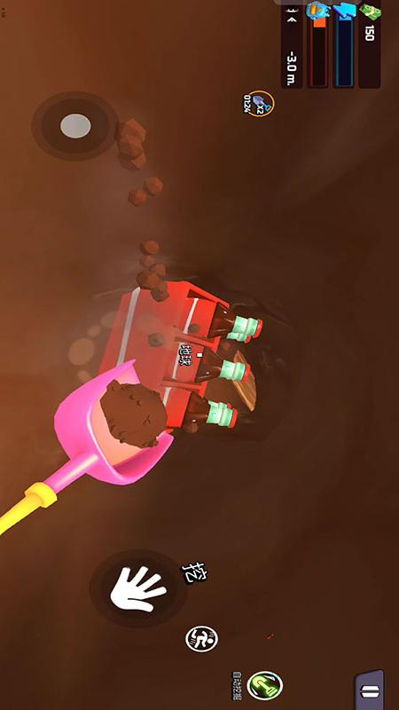 3、玩法操作围绕着挖掘展开,通过控制铲子方向与力度开辟路径,避免挖掘过程中遇到的障碍。